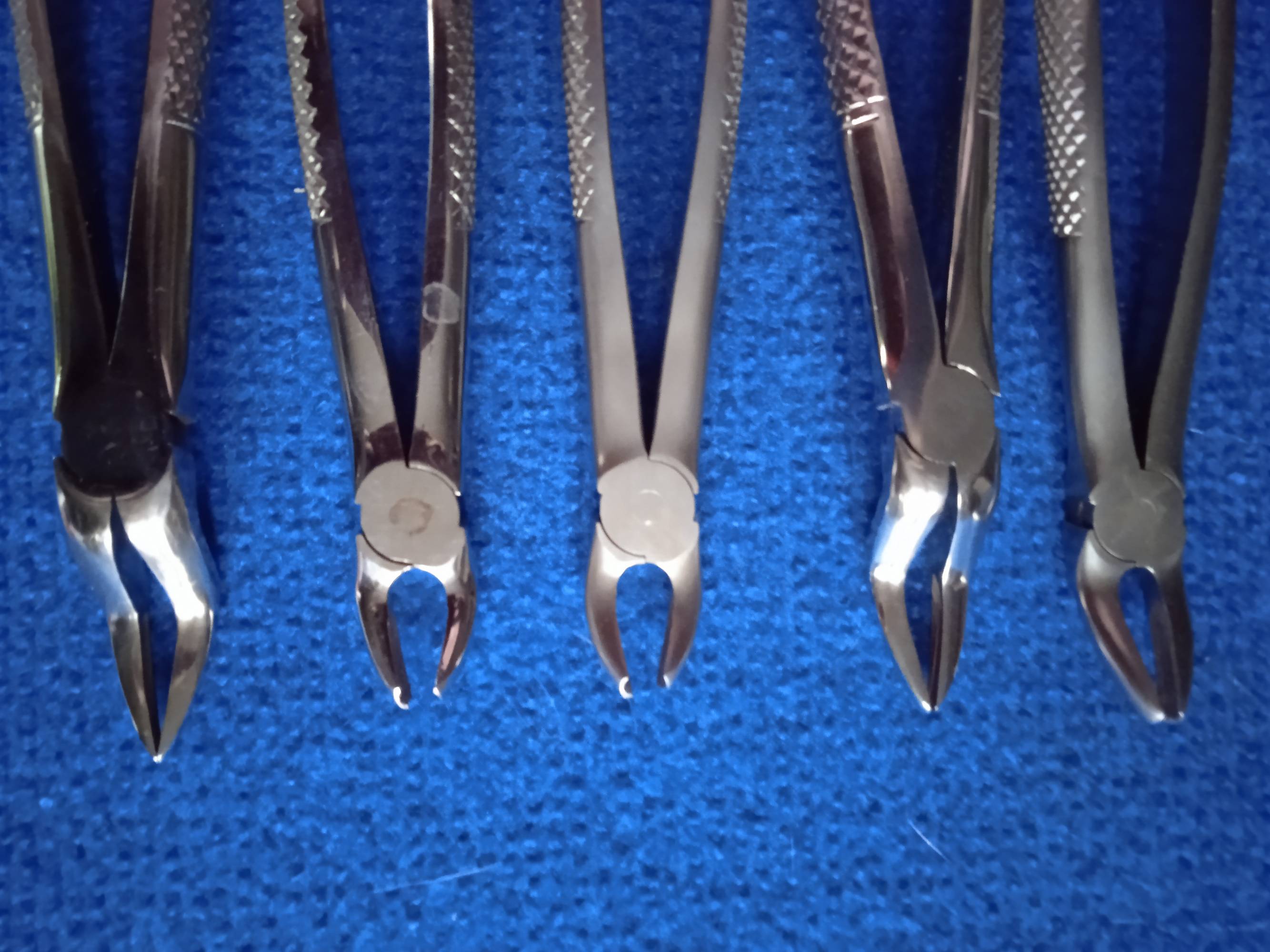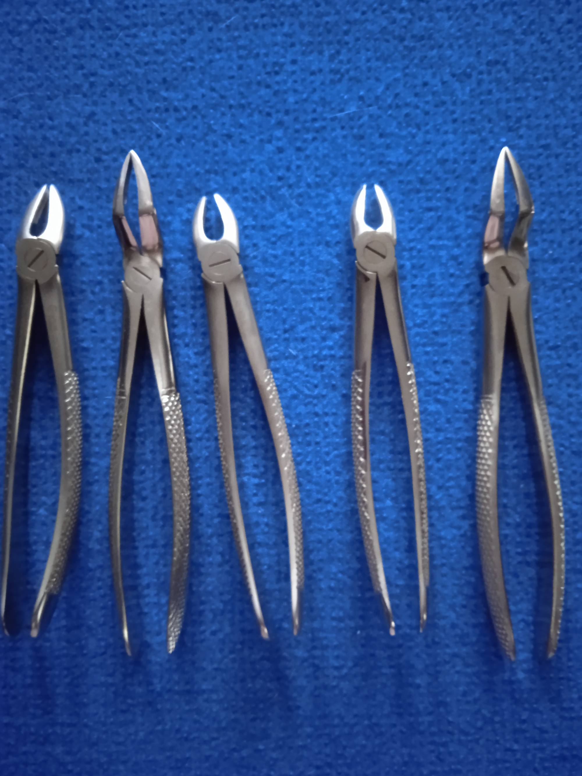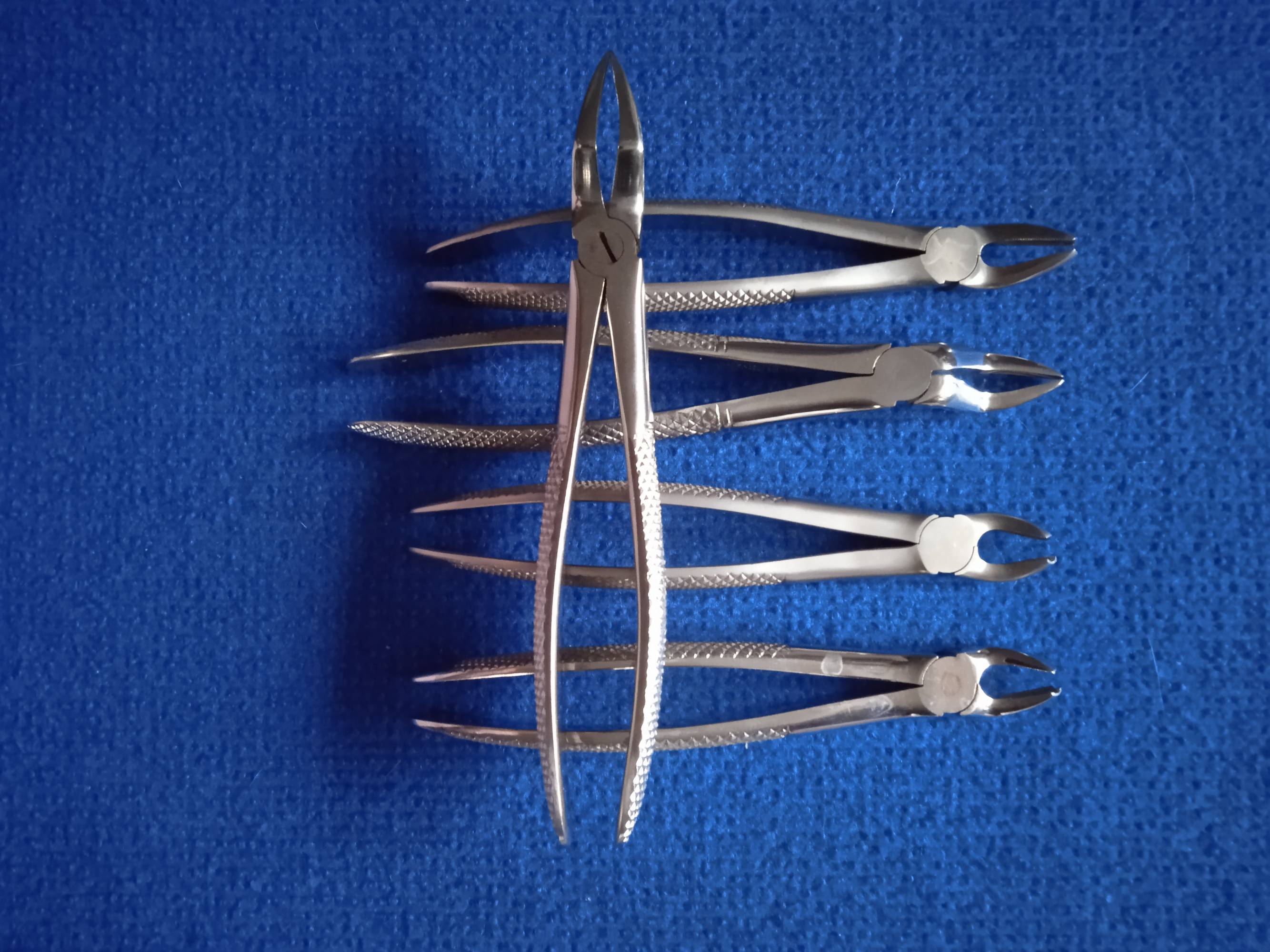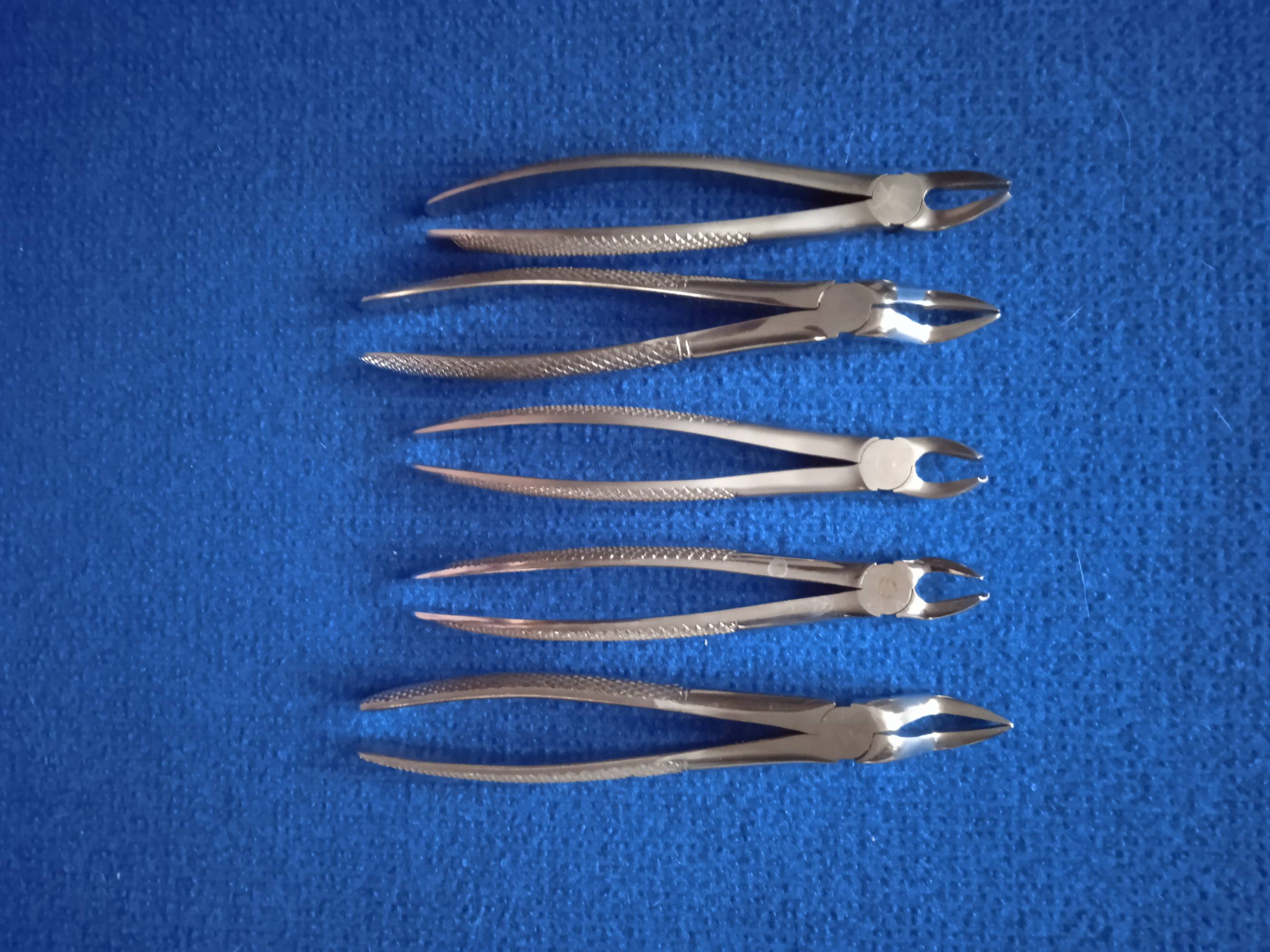 Używane, w bardzo dobrym stanie kleszcze stomatologiczne. W zestawie 5 sztuk.