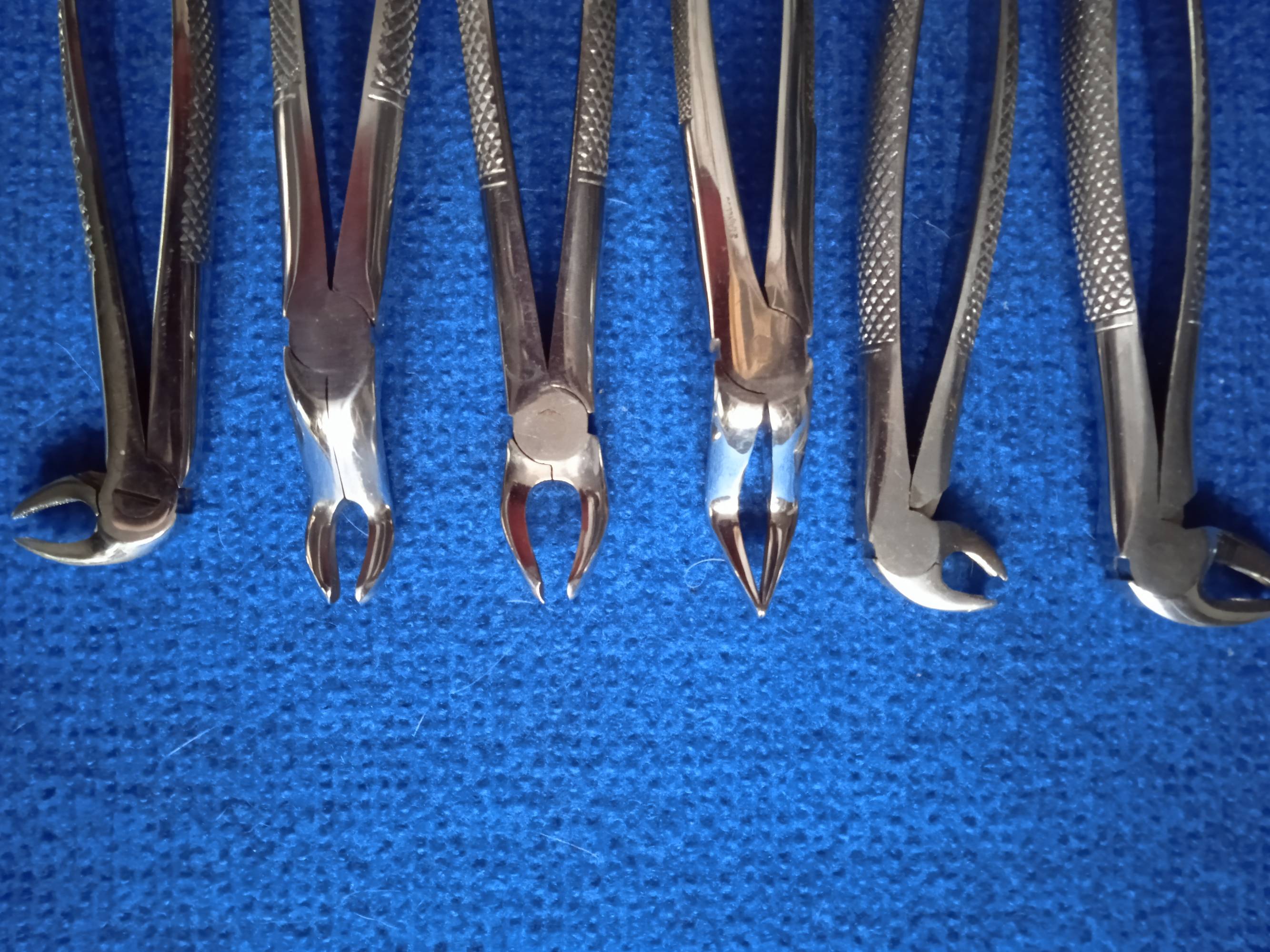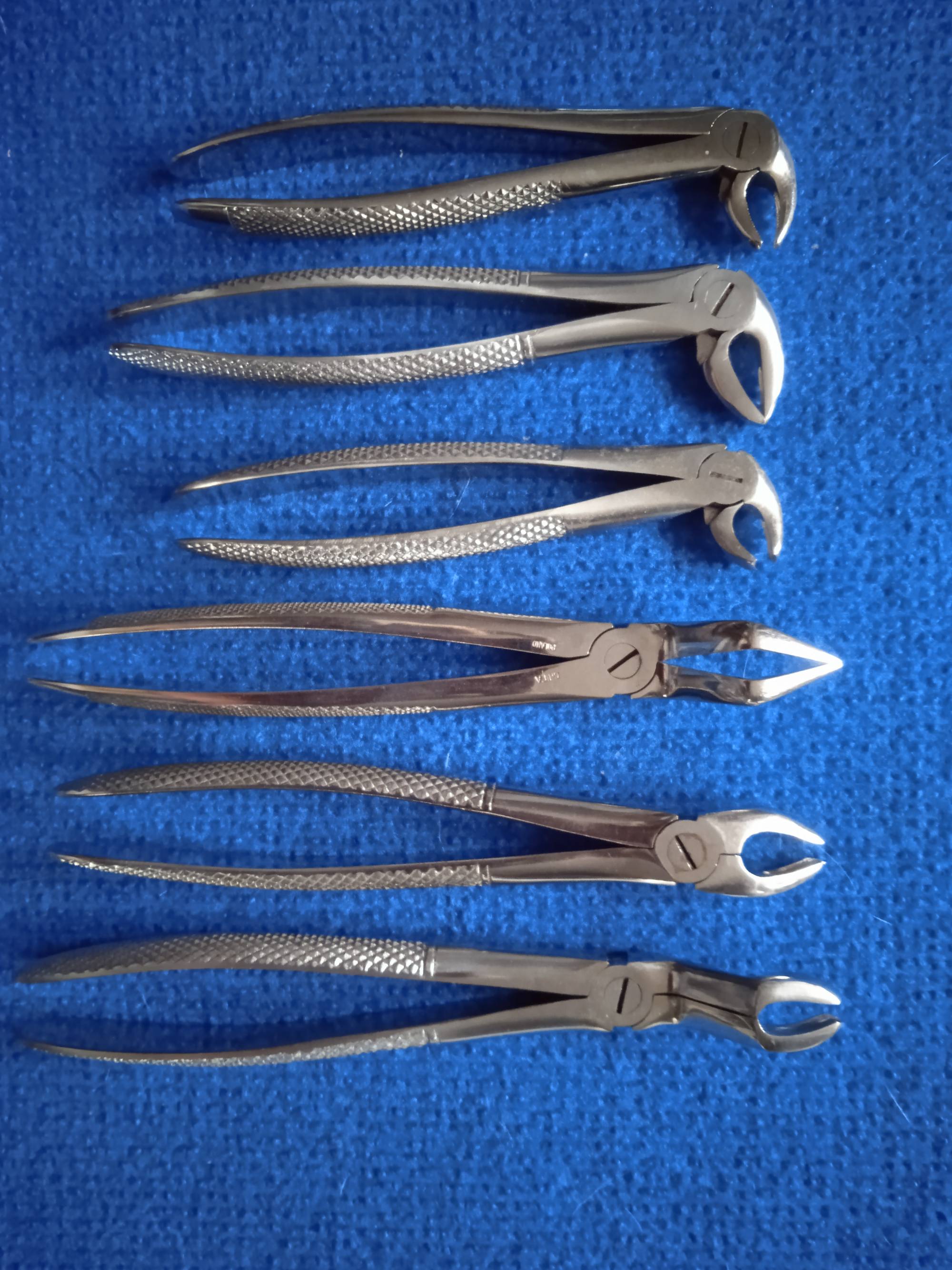 Używane, w bardzo dobrym stanie kleszcze stomatologiczne. W zestawie 6 sztuk.